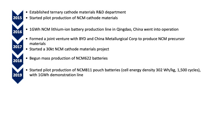 Milestones of Guoxuan’s NCM battery development